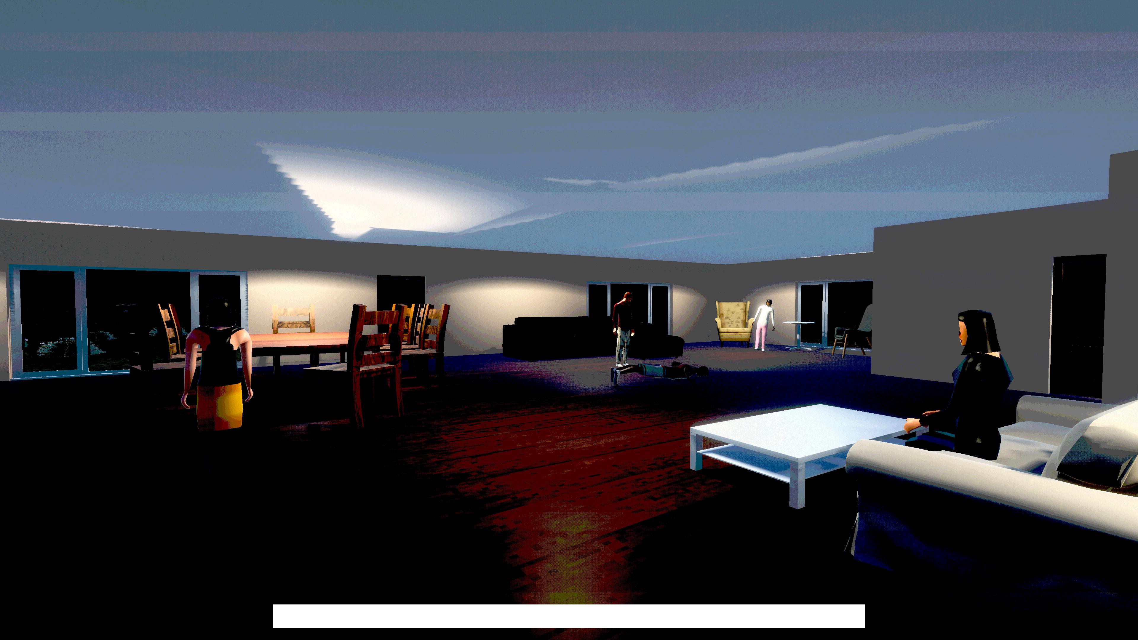 After talking to everyone in the party, go to the couch on the second floor, sit and relax.